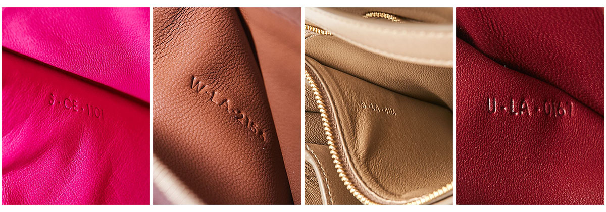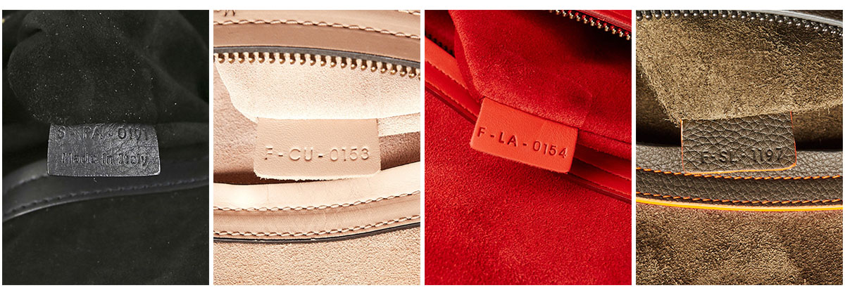 Celine has many variations on how and where the date code is presented based on the season, year, and bag style. It can be printed on a leather tag or embossed directly on the lining. There are differences in the thickness of the embossing, the shape of the leather tab itself, the font, and the location of the date code. Some Celine bags have a single line, while others have two lines of date codes with the first line indicating the production start date and the second line indicating the production completion date. Others also have the words “Made in Italy” under a single line of date codes, or two lines.